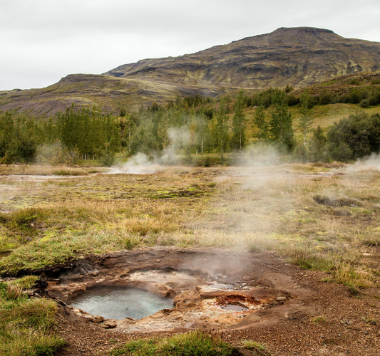 Iceland is a land covered by lava, but in contrast to many other areas of the world where this is also the case, Iceland is also an extremely wet country. With so many glaciers melting Iceland's land is rich in moss and waterfalls are plentiful. Because of this, the landscape is bumpy but lush. Right down the street from Vogar, enveloped in moss and lava, geothermal sites create fun places to visit.