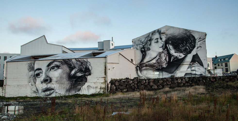 Iceland is a country that embraces and supports artists. You can see this in the colorful houses that line the streets, the gorgeous buildings dedicated to music and theatre, sculptures, and even graffiti... if you can call such exquisite work graffiti.